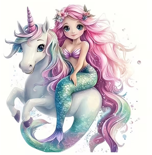 1 Stück - BÜGELBILD EINHORN MEERJUNGFRAU