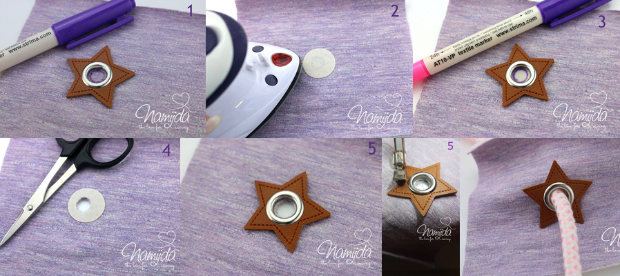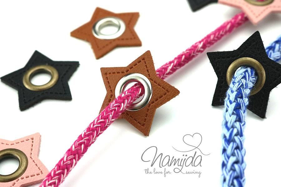 1 Stück - Öse auf Stern Kunstleder Patch - absolut genial, einfacher geht es nicht, da ist die Öse bereist im Kunstleder Patch eingeschlagen und muss nur noch auf den Stoff genäht werden.