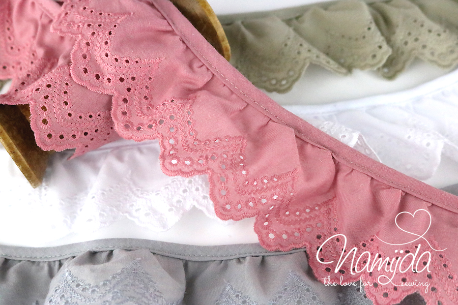 ♥1 Meter gerüschte, unelastische Wäschespitze Waves mit traumhaft schöner Bogenkante im welligem ZackenDesign♥