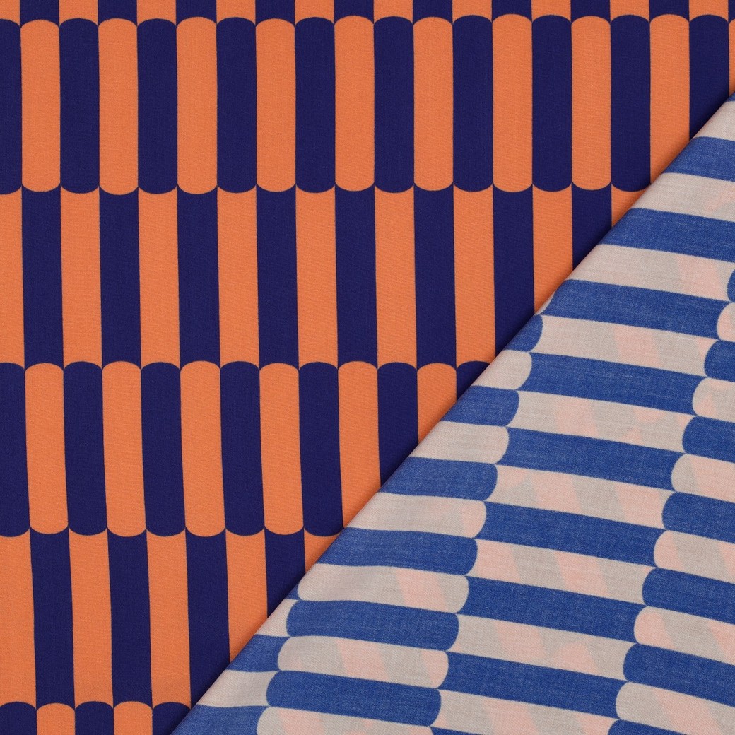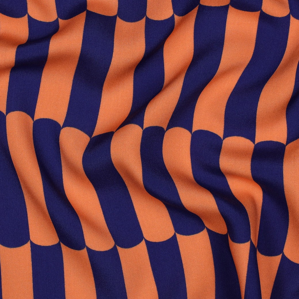 0,5 MTR.♥ VISKOSE ECOVERO BLUSH LINES NAVY/ORANGE ♥