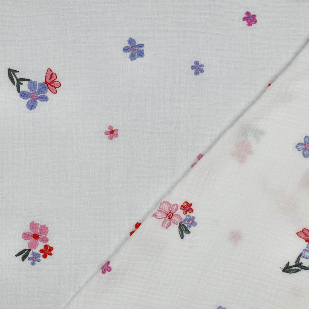 Mobile Preview: 0,5 MTR. ♥ MUSSELIN BLUM KOMFETTI GESTICKTE BLÜMCHEN ♥