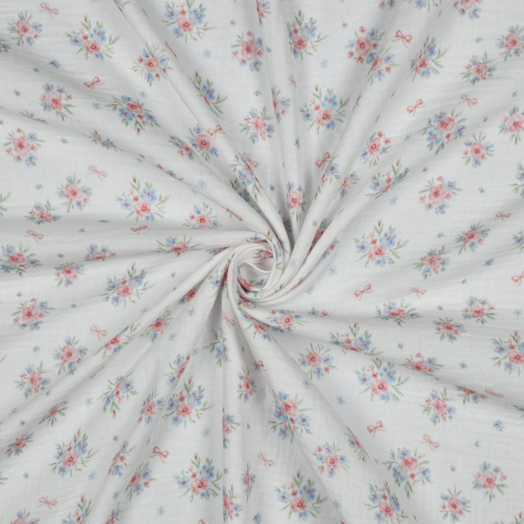 Mobile Preview: 0,5 MTR. ♥ MuSSELIN LITTLE BOWS ROSY GARDEN  ♥