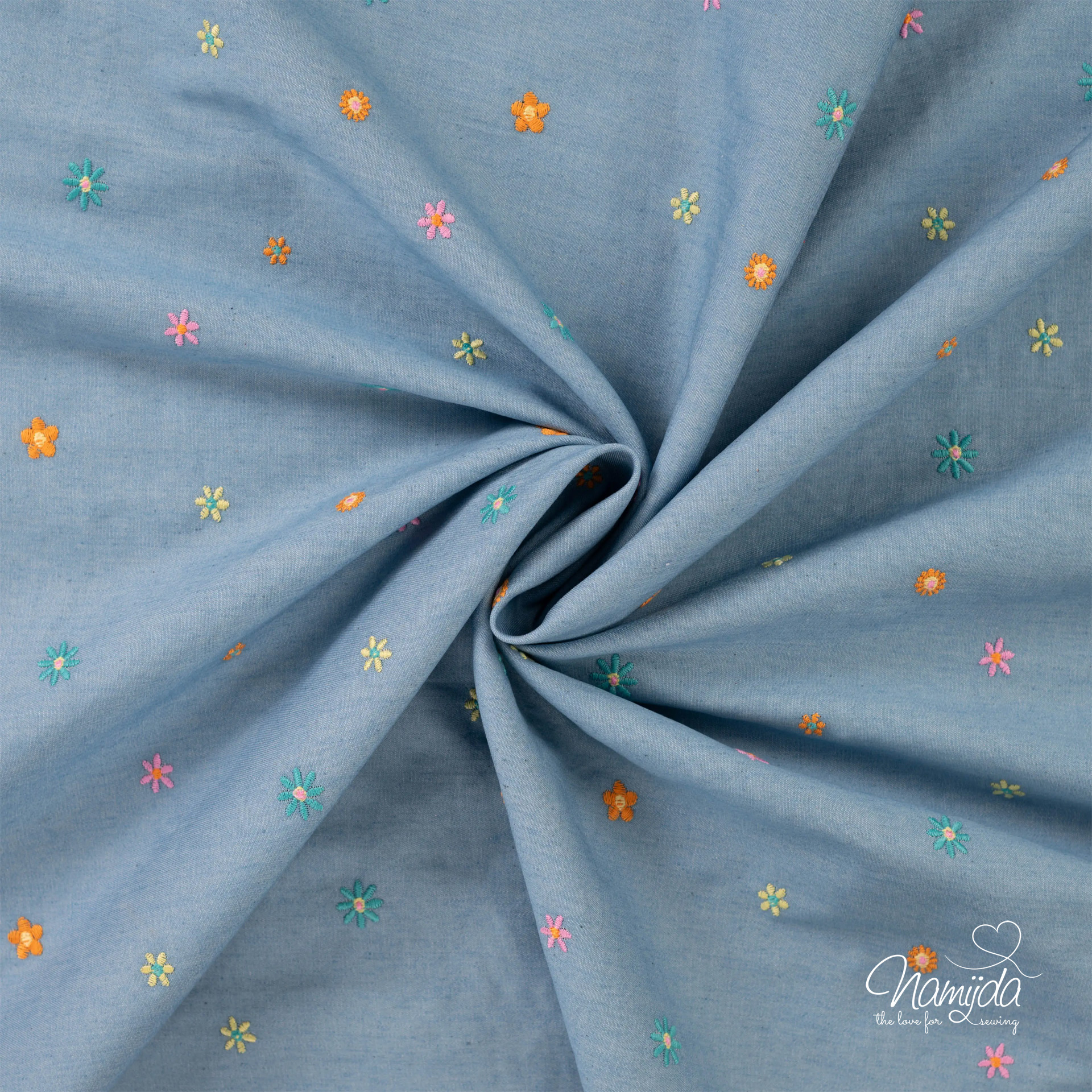 0,5 MTR. JEANS CHAMBRAY BLÜMCHEN