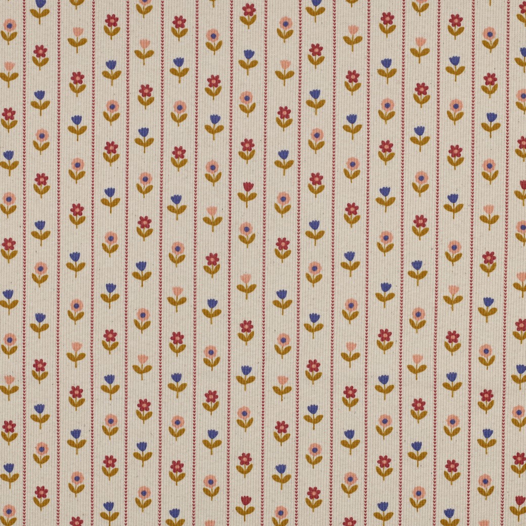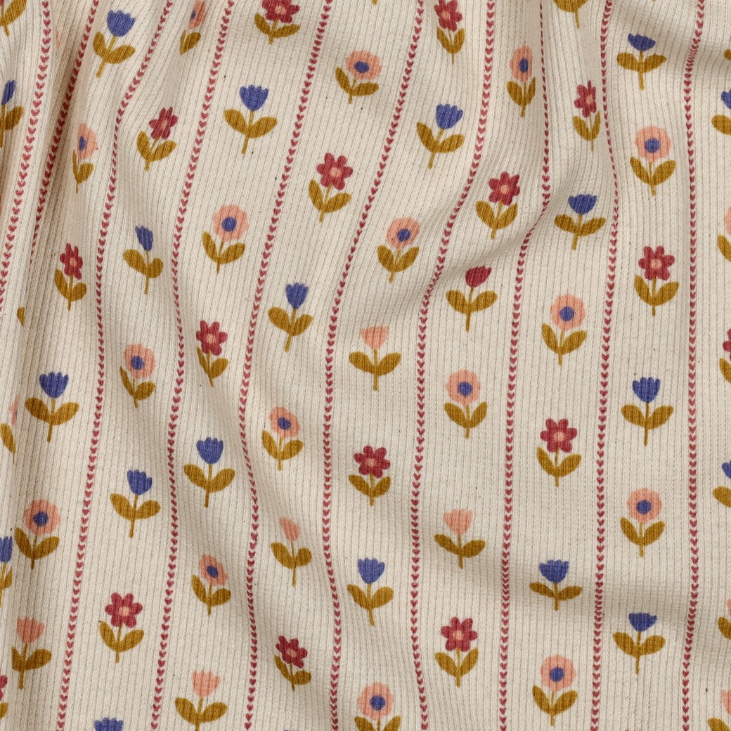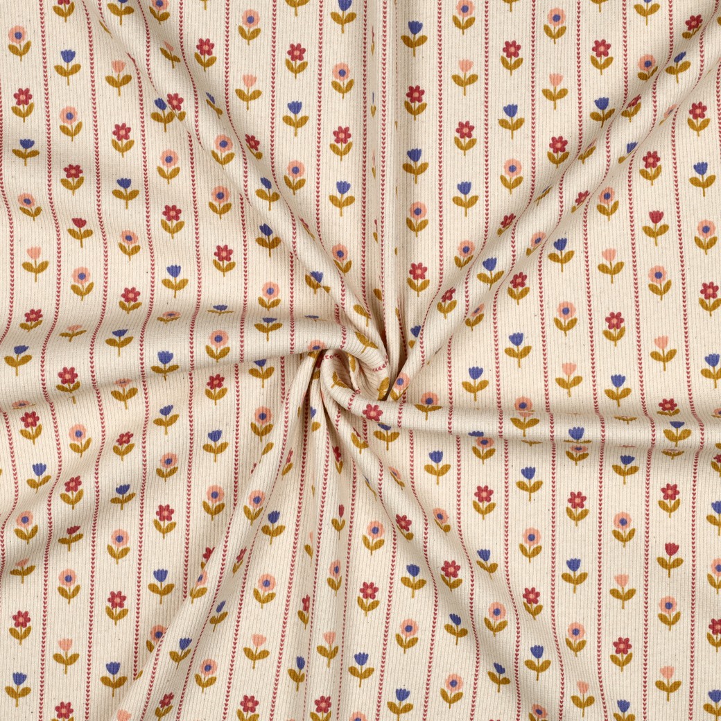 Startseite » STOFFE » JERSEY » Jersey Rippstrick Muster » 0,5 MTR. ♥ RIPPSTRICK JERSEY LILLE BLOMST NATURAL ♥