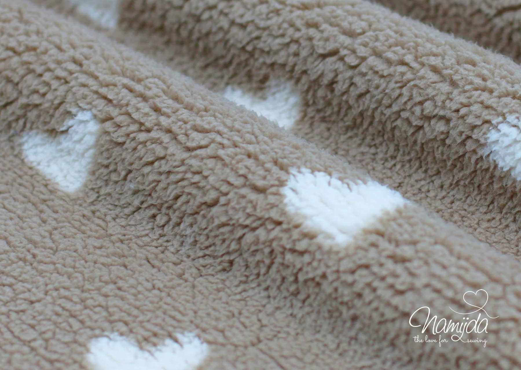 0,5 MTR. ♥ TEDDY HEARTS TAUPE/WOLLWEISS ♥