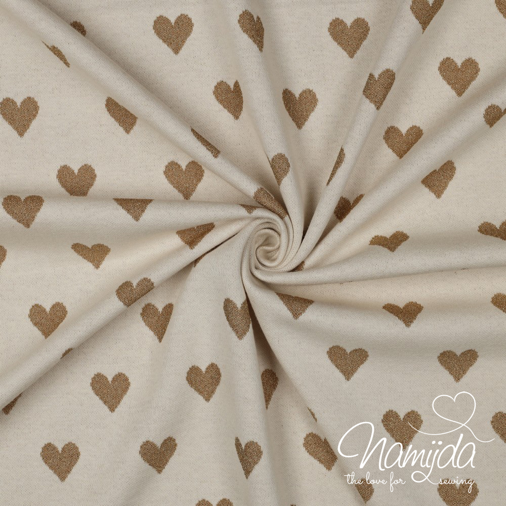 0,50 Meter ♥ wunderschöner, super weicher Jacquard mit golden Herzen ♥