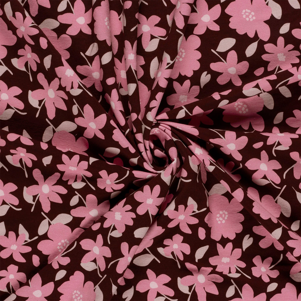 0,5 MTR. AUTUMN AUBERGINE FLOWERFIELD - FRENCH TERRY