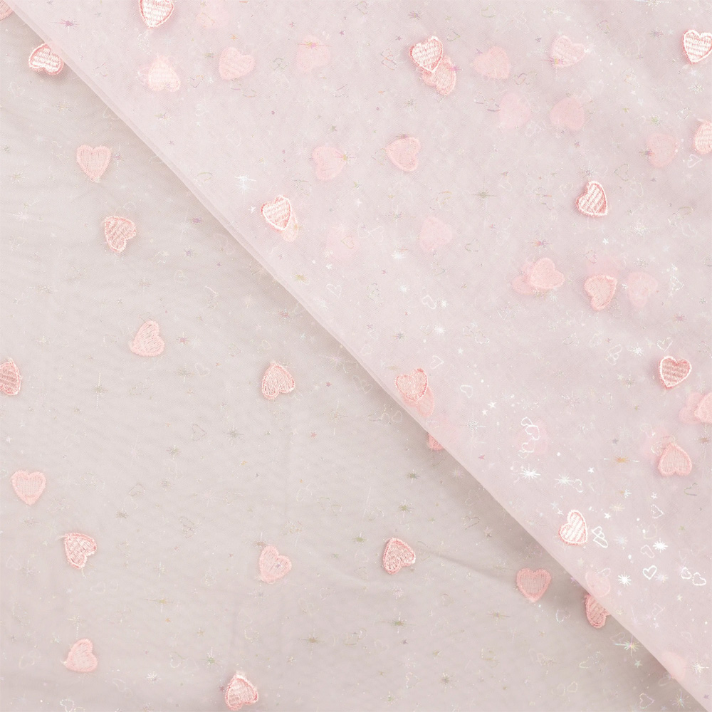 0,5 Meter ♥ wunderschöner, ganz weicher Tüll mit aufgestickten Herzchen ♥