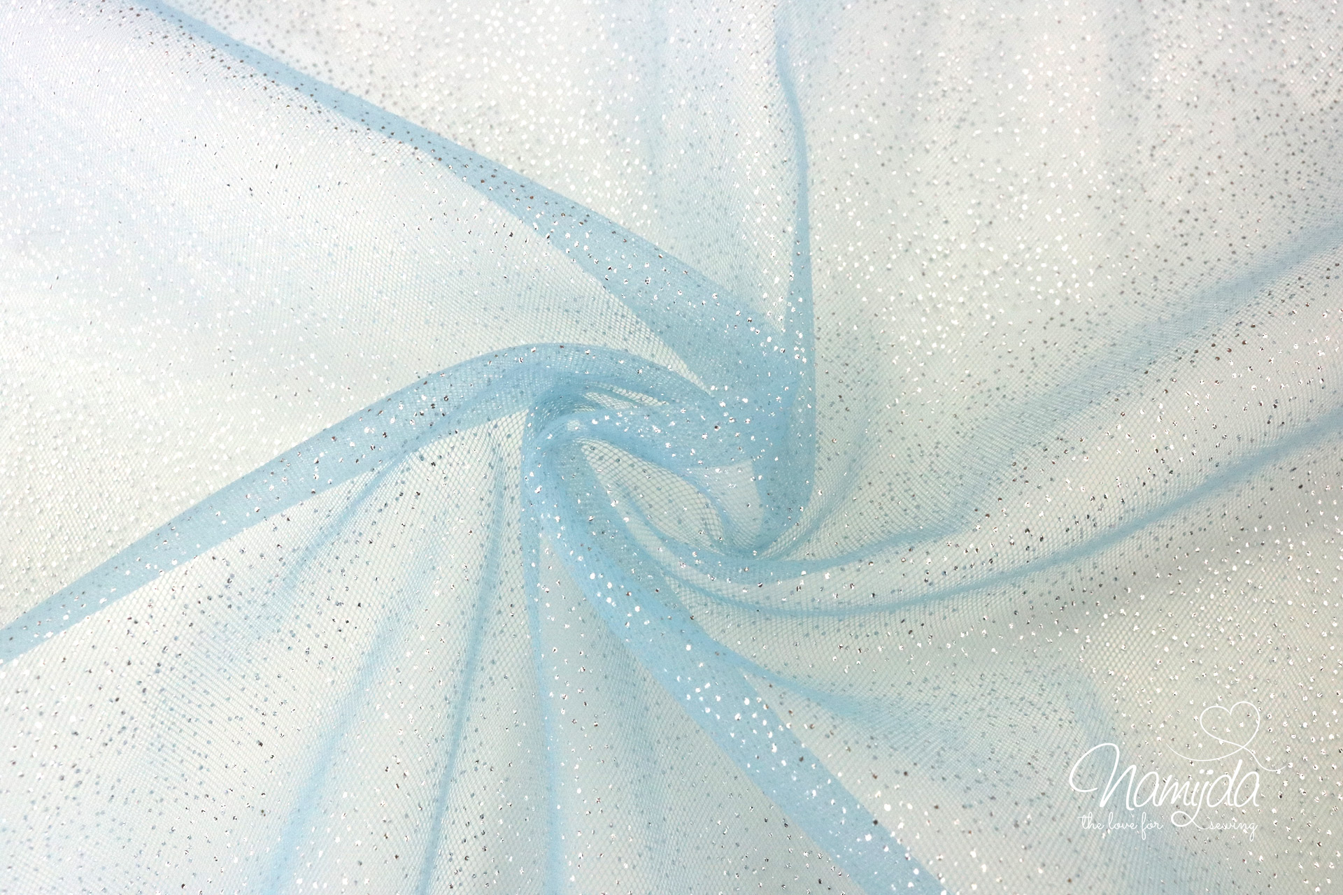 0,5 MTR. ♥ WEICHER GLITZER TüLL EISBLAU/SILBER ♥