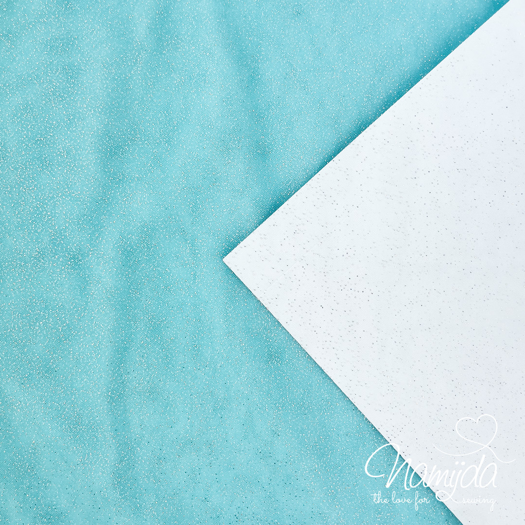 Mobile Preview: 0,5 MTR. ♥ WEICHER GLITZER TüLL EISBLAU/SILBER ♥
