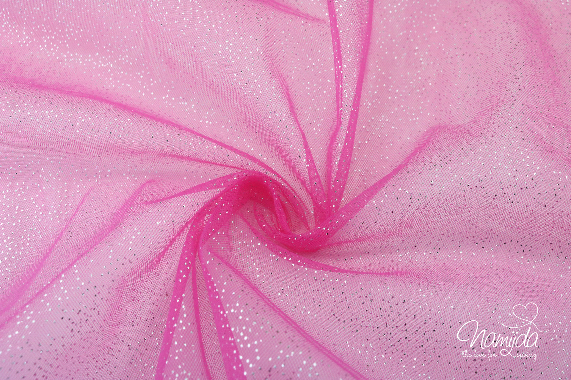 0,5 MTR. ♥ WEICHER GLITZER TüLL PINK/SILBER ♥