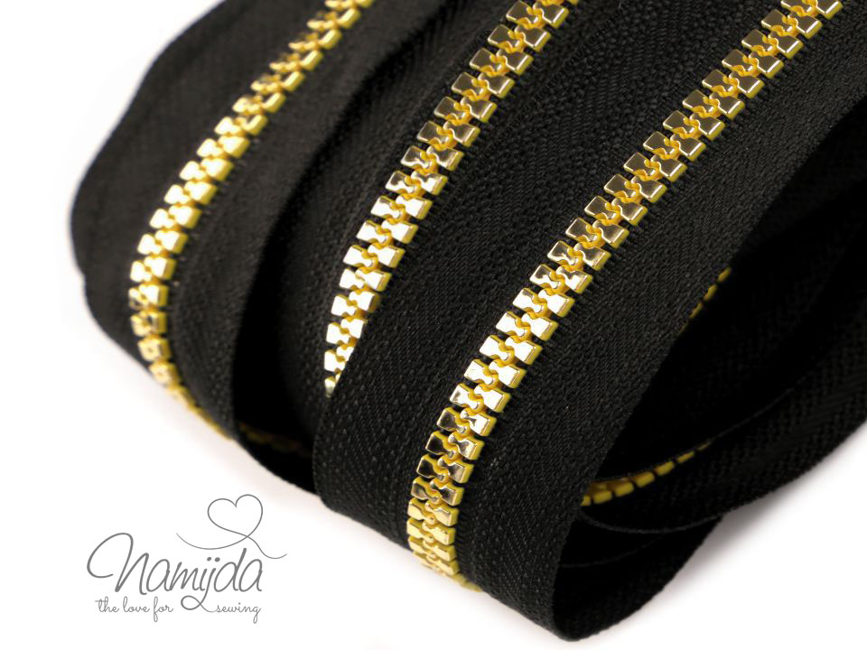 1 MTR. REIßVERSCHLuSS - SCHWARZ/GoLD - 5mm (Passender Zipper Artikel 702F)